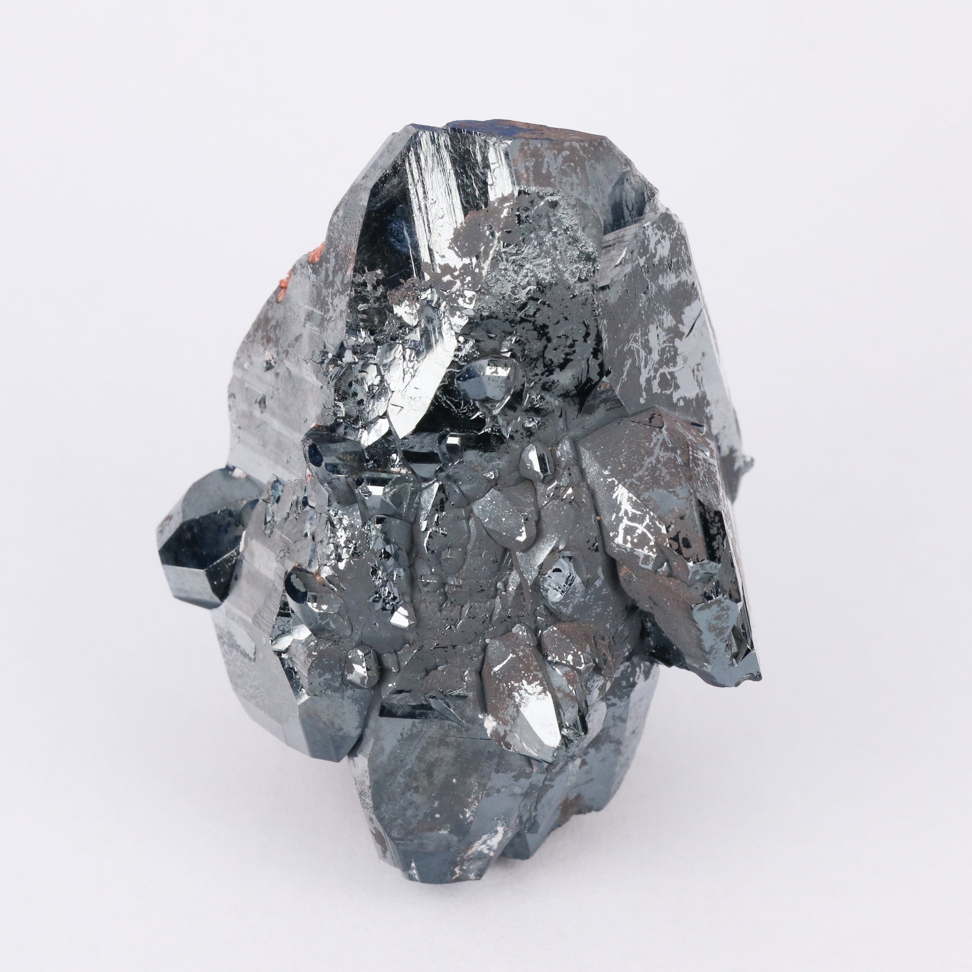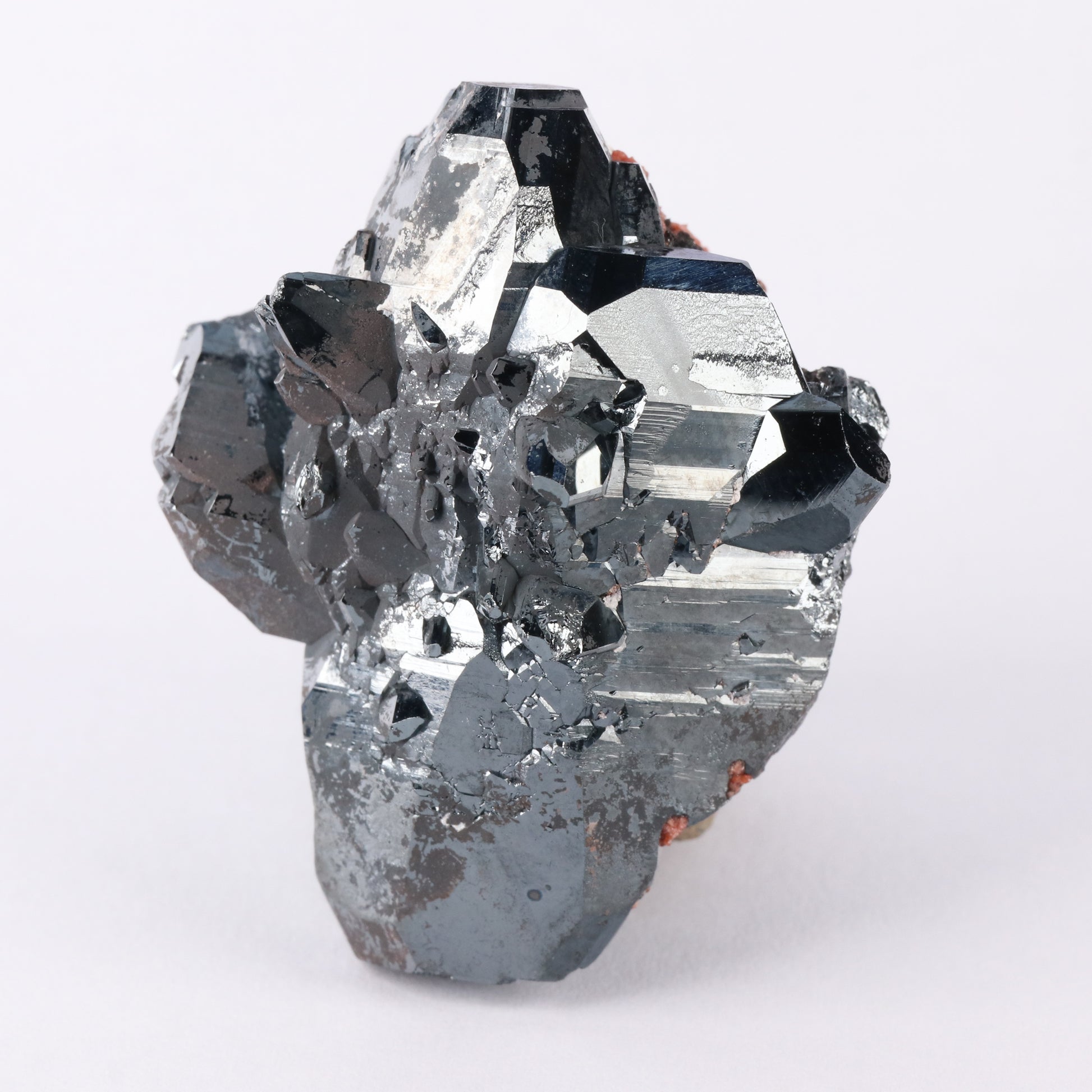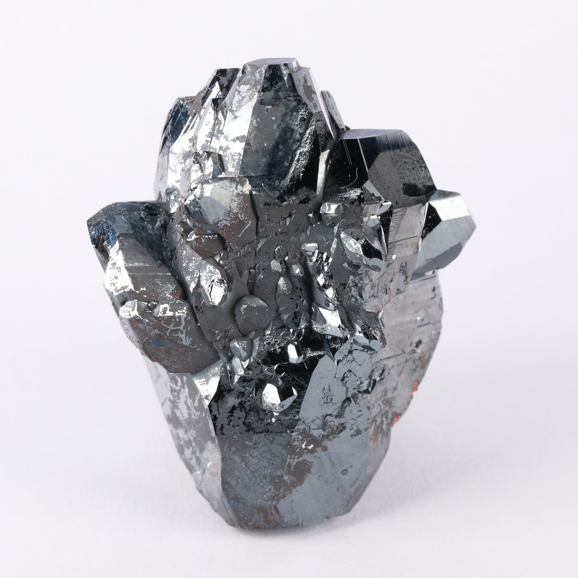 Some of the world's finest hematite specimens are found at the Wessels Mine. This miniature features a 4.1cm scalenohedron with a few side car crystals. The hematite crystal has very sharp, metallic, highly lustrous faces and the classic steel-black color. The specimen has a couple of abrasions here and there but overall a presentable specimen.