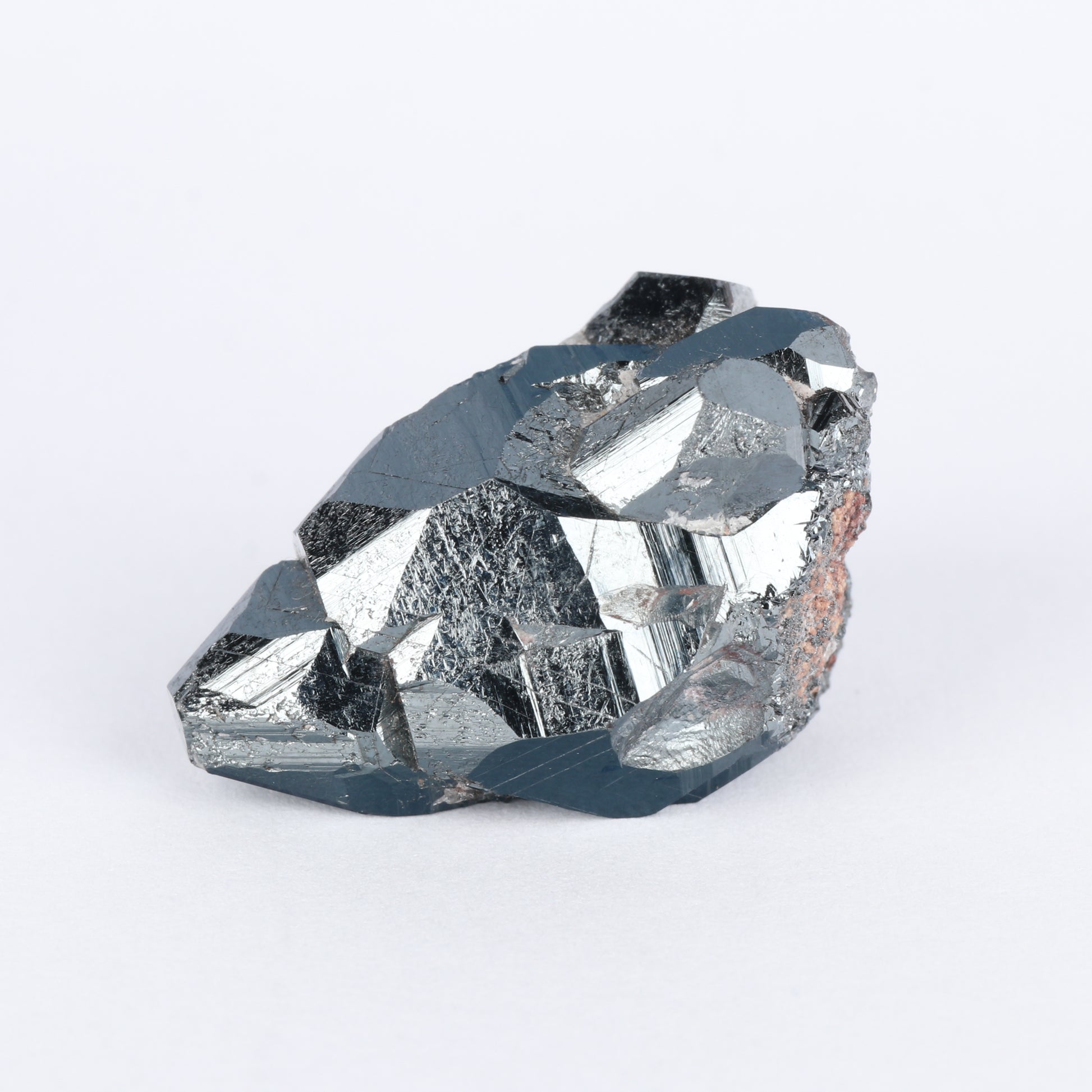 The specimen is made up of intergrown hematite crystal with a naturally flat base which allows the specimen to stand on it's own. The hematite has a lovely luster with a silvery colour. There are some minor abrasions.
