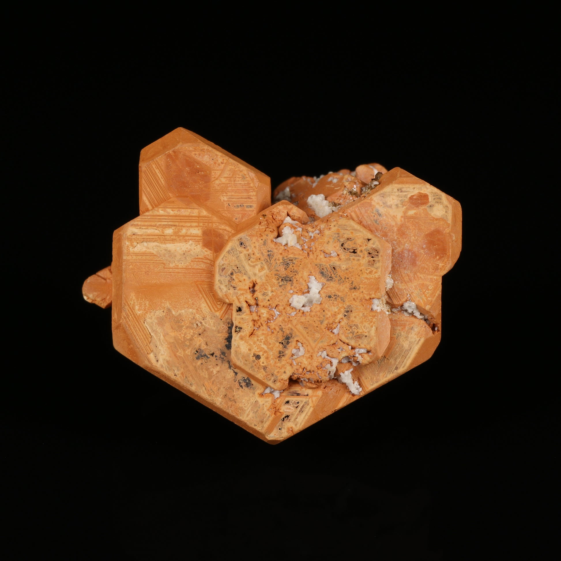The ilmenite has a lamellar tabular trigonal structure. these three characterestics can be seen in the structure and in some of the aligned surface patterns on the flat tabular crystal surfaces. The crystals of ilmenite are covered with a thin resinous ochre coloured marginally radio active material.