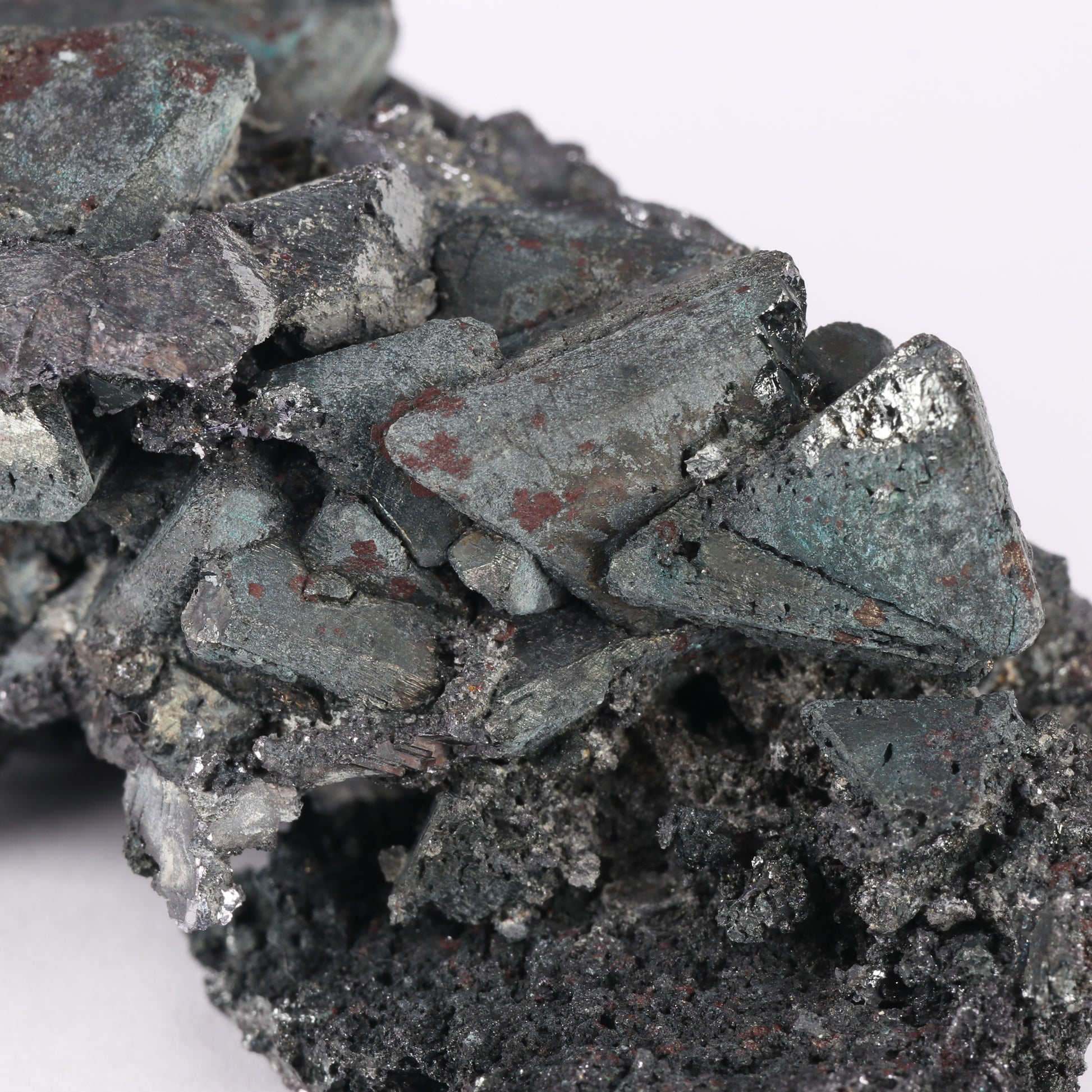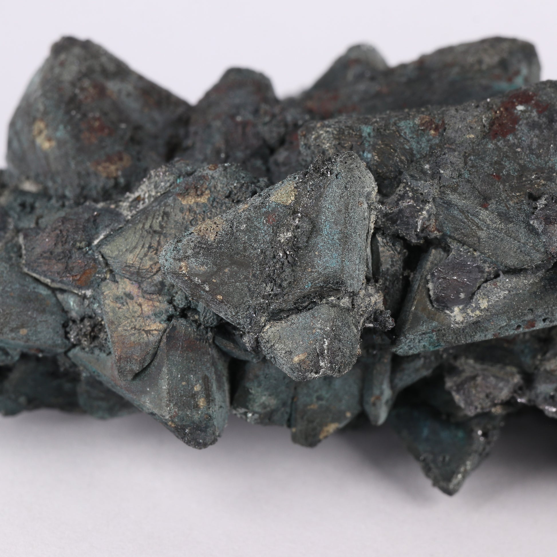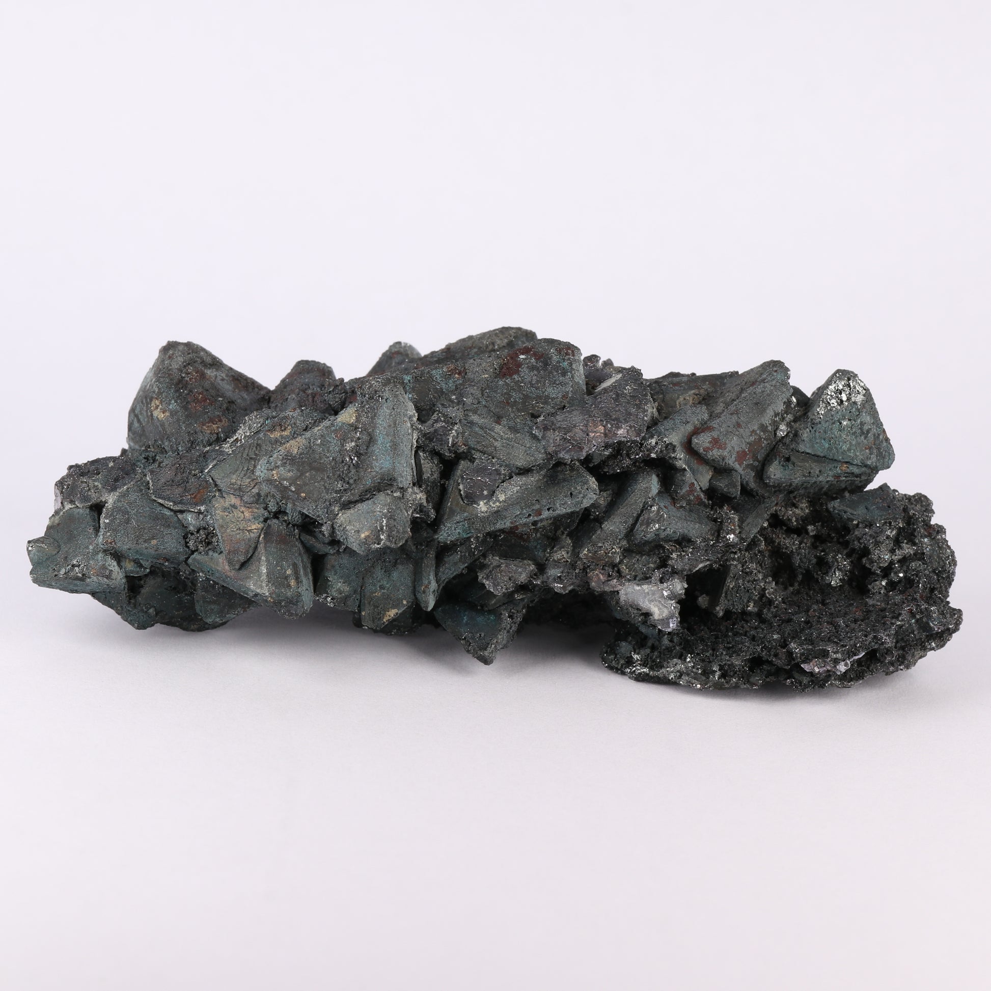 The specimen is a mass of tennantite with numerous tetrahedral crystals defining the surface form. The specimen is in a dull charcoal grey finish with crystals to 1.3cm. There are a few abrasions here and there but overall very nice specimen with well defined crystals.